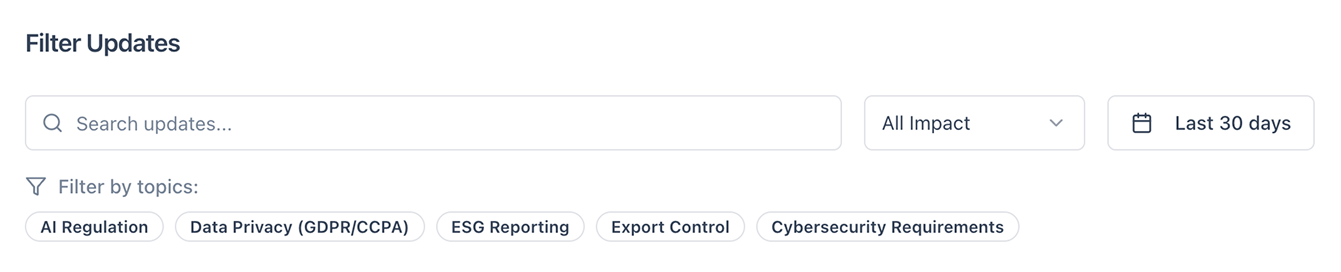 Zie alleen de updates die relevant zijn voor jouw sector of jurisdictie.